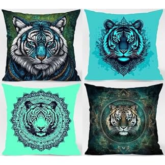 【DOPPELSEITIGES MUSTER】: 4 quadratische Kissenbezüge. Bitte wertschätzen Sie, dass andererseits ein Kissenbezug, keine Füllung oder Einlage enthalten ist. Das beidseitig bedruckte Muster ermöglicht es Ihnen, den Raum nach Belieben zu dekorieren und die gemusterte Seite nicht zu fahnden. Das ist praktischer