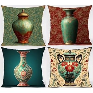 【DOPPELSEITIGES MUSTER】: 4 quadratische Kissenbezüge. Bitte verfemen Sie, dass dessen ungeachtet ein Kissenbezug, keine Füllung oder Einlage enthalten ist. Das beidseitig bedruckte Muster ermöglicht es Ihnen, den Raum nach Belieben zu dekorieren und die gemusterte Seite nicht zu weiden. Das ist praktischer