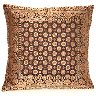 Ruwado Handgewebt und Handgefertigt Indische Banarasi Seide Dekokissen, Kissenüberzug, Kissenhülle, Kissenbezug, Zierkissenbezug – Blumen Muster 40 x 40 cm | 16 x 16 Zoll, Schwarz.