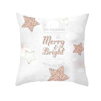 KnSam 45x45cm Weihnachten Kissenbezug, Briefe und Stern Dekokissen Polyester Weich Bequem, Quadratische Kissenhülle für Wohnzimmer Schlafzimmer Büro Sofa Dekor, Rose Gold Weiß