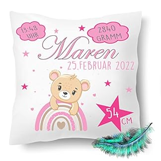 Personalisierbares Kissen zur Geburt für Jungen und Mädchen, Geburtskissen mit Namen, Geschenk, bedrucktes Teddy Rosa Kissen | Dekokissen, Zierkissen, Taufe | Kuschelkissen 40X40 (ohne Kissenfüllung)