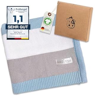 €23,95Produkt kaufenMinky Mooh Babydecke Bio Baumwolle, Oeko-Tex 100, Kuscheldecke, Strickdecke, Krabbeldecke & Puckdecke, Geschenk zur Geburt & Erstausstattung- 94×72 cm, Blau gestreift