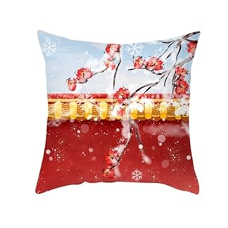 €5,77Produkt kaufenEpinki 40x40cm Zierkissenhülle, Dekokissen 1 Pcs mit Rote Wand Schneeflocke und Blumen Muster Motiv Bequem Polyester für Autos Schlafzimmer Dekor, Polyester, Rot Weiß