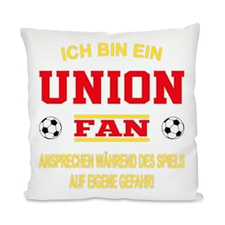 €13,90Produkt kaufenHerzbotschaft Fussball Kissen | Ich Bin EIN Union Fan – Ansprechen während des Spiels auf eigene Gefahr | Dekokissen für Fußballfans | Hülle und Füllung | 40cm x 40cm | versteckter Reisverschluss