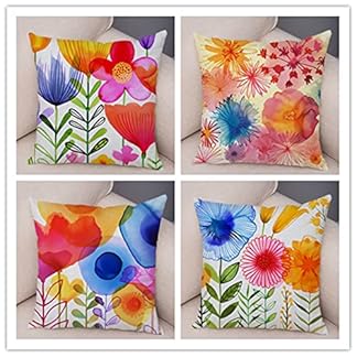 Fheeao 4er Set Kissenbezug 40x40cm Bunte Blume Dekokissen Kissenbezüge Sofakissen Leinen Kissenhülle Couch Kissen mit verdecktem Reißverschluss Modern Zierkissen kissenhülle für Wohnzimmer Sofa Auto