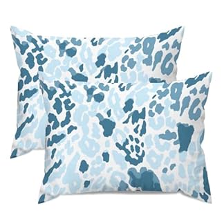 Freecustom 2er Set Lendenkissen Kissenbezug Hellblau Leopard Tierdruck Kissenbezug Wild Animal Print 50,8 x 66 cm Dekokissen Home Baumwolle Leinen Retro Rustikaler Kissenbezug für Couch Sofa Bett Auto