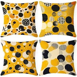 Outdoor Kissen Gelb Kissenbezug 80×80 cm Geometrie, 4er Set Outdoor Kissen Wetterfest mit ReißVerschluss Dekokissen Samt Kissenhülle für Sofa Schlafzimmer Wohnzimmer Terrassen Balkon Geschenke 30-X