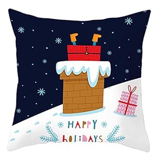 €5,99Produkt kaufenLieson Sofakissen Weihnachten, Kissenhülle Sofa Dekokissen Bezug 45×45 Weiß Dunkelblau Schornstein Happy Holiday, Polyester