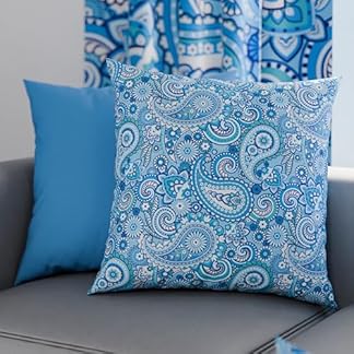 PETTI Artigiani Italiani – 1 Paar Kissenbezüge 40 x 40 cm aus Mikrofaser, Dekokissen für Schlafzimmer, Sofa, Wohnzimmer, Set mit 2 Kissenbezügen, Paisley hellblau, 100% Made in Italy