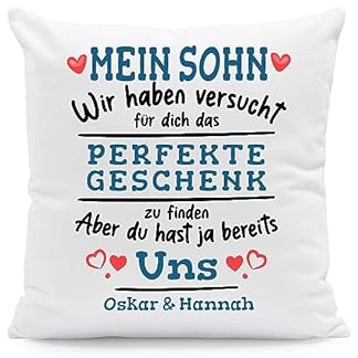 €19,90Produkt kaufenGRAVURZEILE Kissen mit Spruch Personalisiert mit Name – Geschenke für die ganze Familie – Größe: mit Füllung – Farbe: Mein Sohn (Wir haben.)