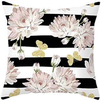€8,99Produkt kaufenLieson Kissenbezug Dekorativ, Dekokissen 50×50 cm 1 Stück Kissenhülle Weiß Schwarz Gold Streifen Blumen Schmetterlinge, Polyester