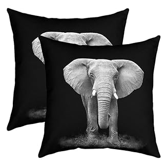 Angebot! Ursprünglicher Preis war: €14,49€12,99Aktueller Preis ist: €12,99.Produkt kaufenFeelyou Set mit 2 Elefanten-Kissenbezügen, 3D-Wildtier-Muster, für Zuhause, Wohnzimmer, wendbar, exotischer Stil, dekorativer Überwurf-Kissenbezug, 50,8 x 50,8 cm
