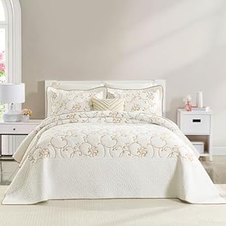 €199,00Produkt kaufenQuiltEase Übergroße Queen-Tagesdecke, 304,8 cm L x 102 cm B, 100 % Baumwolle, leichte Stickerei, Tagesdecke, wendbar, extra breit, 3-teilig, Beige/Weiß