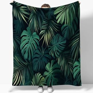 Kuscheldecke 220 x 240 cm Pflanzen Üppige Blätter Schwarz Grün, Warm Flauschig Flanell Kuscheldecke für Herbst Winter, Weichen Bequem Drucken Decke als Sofadecke Schlafdecke Bettüberwurf
