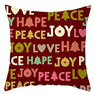 KnSam 40x40CM Weihnachten Kissenbezug, Hope Joy Love Peace Dekokissen Polyester Weich Bequem, Quadratische Kissenhülle für Zuhause Wohnzimmer Schlafzimmer Büro Sofa Dekoration, Bunt