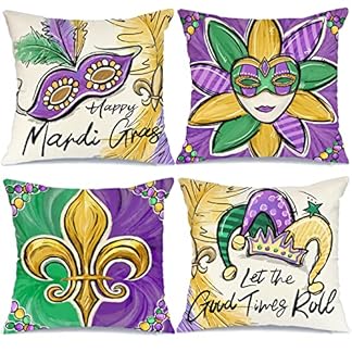 €44,14Produkt kaufenGEEORY Karnevals-Kissenbezüge, 45,7 x 45,7 cm, 4 Stück, für Perlen, Maskerade-Maske, Fleur de Lis, Feder, Happy Mardi Gras Dekor, Dekokissen