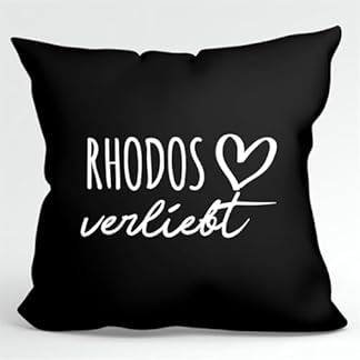 huuraa Kissen Rhodos verliebt Deko Kissenbezug 40x40cm Black mit Namen deiner lieblings Insel Geschenk Idee für Freunde und Familie