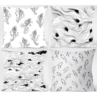 €38,88Produkt kaufenKissenbezug 55×55 cm 4er Set, Outdoor Kissen Schwarz und Weiß Sofakissen Fisch Dekokissen, Doppelseitiger Druck Wasserdichtes SanftKissenbezüGe, KissenhüLlen für Garten Deko Wohnzimmer Model-13155