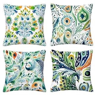 Kissenbezug 50 x 50 cm 4er Set Kissenbezug abstrakte Pfauen Dekokissenbezug Sofakissenbezug Samt Dekorative Weich Zierkissenbezug Moderne Dekokissen Kissenhülle für Schlafzimmer, Sofa, Stuhl, g-103