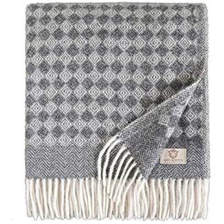 Linen & Cotton Warme Decke Wolldecke Wohndecke Kuscheldecke Paris mit Rautenmuster – 100% Reine Neuseeland Wolle…