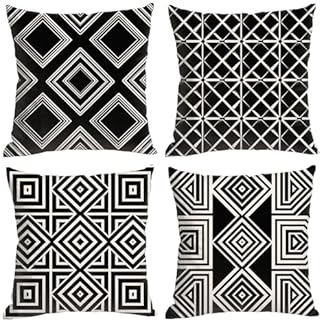 €39,89Produkt kaufenOutdoor Kissenbezug 60x60cm 4er Set Leinen Kissenhülle Schwarz-Weiß-Geometrisch Dekokissen Modern Dekorativ Sofakissen mit Verstecktem Reißverschluss für Sofa Garten Zuhause Dekoration