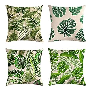 Kissenbezug 80x80cm,4er Set Deko Kissen,Grünes Bananenblatt Doppelseitiger Druck Kissenbezüge,Quadrat Leinen…