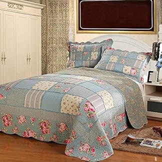 QUSYZD Tagesdecken, Gesteppte Tagesdecke in Doppelbettgröße, King-Size-Bett, Patchwork-Steppdecken aus Baumwolle, Bettwäsche, Überwurfset, Bettdecke und Kissen, EE-230 x 250 cm,N-King 230X250cm