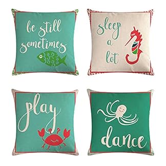 €9,59Produkt kaufenKissenbezug 80x80cm,4er Set Deko Kissen,Cyan Meerestiere Doppelseitiger Druck Kissenbezüge,Quadrat Leinen…