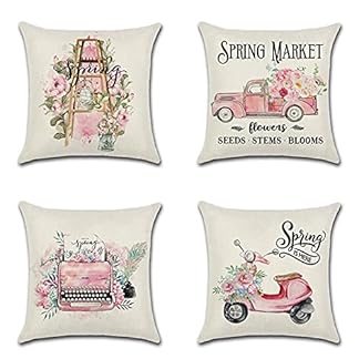 €64,99Produkt kaufenKissenbezug 80x80cm,4er Set Deko Kissen,Rosa Blumenwagen Doppelseitiger Druck Kissenbezüge,Quadrat Leinen…