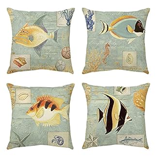 €73,35Produkt kaufenKissenbezug 80x80cm,4er Set Deko Kissen,Blaue Meerestiere Doppelseitiger Druck Kissenbezüge,Quadrat Leinen…