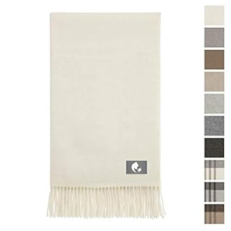 HANSA-FARM | Extra große Baby Alpaka Decke – 200 x 130 cm – Kuschelig weich aus 100% Baby Alpakawolle (kratzfrei, ungefärbt) Plaid Tagesdecke & Alpaka Wolldecke – Woll-weiß/Natur Weiß Uni