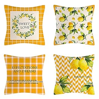 Kissenbezug 80x80cm,4er Set Deko Kissen,Weiße gelbe Zitrone Doppelseitiger Druck Kissenbezüge,Quadrat Leinen…