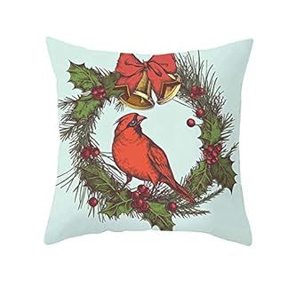 €6,99Produkt kaufenKissenbezug Weihnachten, Kleiner Vogel Kiefernzweig Kreis Glocke Couchkissen 45x45cm Dekokissen für Sofa Couch Bett Auto Blau Grün Rot