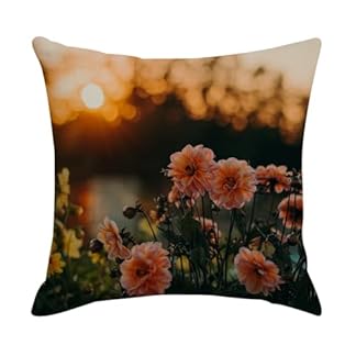 Epinki 40x40cm Zierkissenhülle, Dekokissen 1 Pcs mit Blumen Sonnenuntergang Motiv Bequem Leinen für Zuhause Autos Wohnzimmer Schlafzimmer Büro Sofa Dekor, Leinen, Orange Gelb