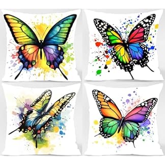 Kissenbezug 80 x 80 cm 4er Set, Outdoor Kissen Schmetterling Sofakissen Farbe Dekokissen, Doppelseitiger Druck Wasserdichtes Leinen KissenbezüGe, KissenhüLlen für Garten Deko Wohnzimmer Model-08611
