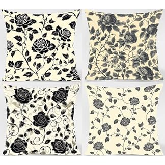 Kissenbezug 80x80cm 4er Set, Outdoor Kissen Blume Sofakissen Schwarz und Weiß Dekokissen, Doppelseitiger Druck Wasserdichtes SanftKissenbezüGe, KissenhüLlen für Garten Sofa Deko Wohnzimmer Model-08993