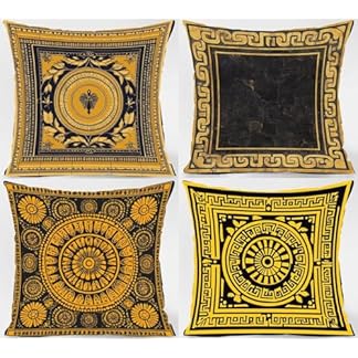 Kissenbezug 80 x 80 cm 4er Set, Outdoor Kissen Gelb Sofakissen Runden Dekokissen, Doppelseitiger Druck Wasserdichtes Leinen KissenbezüGe, KissenhüLlen für Auto Schlafzimmer Deko Wohnzimmer Model-09223