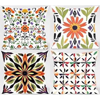 Kissenbezug 35 x 35 cm 4er Set, Outdoor Kissen Blume Sofakissen Farbe Dekokissen, Doppelseitiger Druck Wasserdichtes Leinen KissenbezüGe, KissenhüLlen für Auto Schlafzimmer Deko Wohnzimmer Model-12820