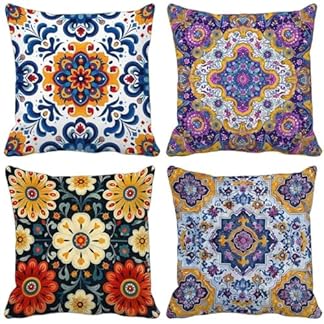 Outdoor Kissenbezug 65 x 65 Böhmen 4er Set, Blume Outdoor Kissen Weich Sofakissen für Schlafzimmer Wohnzimmer Couch Garten Terrasse Bank Auto Frühling Sommer Dekokissen, Geschenke für Frauen u17-7
