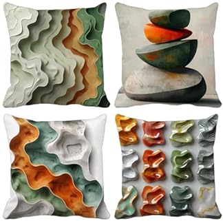 Outdoor Kissenbezug 70 x 70 Einfacher Stil 4er Set, Geometrie Outdoor Kissen Wasserdicht Leinen Sofakissen für Schlafzimmer Wohnzimmer Couch Garten Bank Frühling Dekokissen, Geschenke für Frauen o13-8