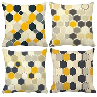 Outdoor Kissen Geometrie Kissen 50x50cm, 4er Set Orange Kissenbezug Dekokissen Quadratische KissenbezüGe mit Verstecktem ReißVerschluss, KissenhüLlen für Outdoor Deko Terrasse Garten Wohnzimmer QJ-236
