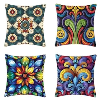Kissenbezug Blau Kissenbezüge 70x70cm 4er Set, Weich Dekokissen Böhmen Musterdesign HD Drucken Quadratische Sofa Kissen mit Verstecktem Reißverschluss für Garten Sofa Couch Wohnzimmer -2503j0E0J