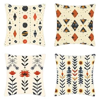 Weiß Outdoor Kissen 80×80 4er Set, Wasserdichter Leinen Kissenbezug Grafik Sofakissen HD Drucken Quadratische Dekokissen für Garten Balkon Wohnzimmer, Geschenke, mit Verstecktem Reißverschluss -253j19