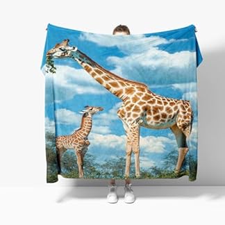 Kuscheldecken XXL 180×220 cm Weich Flauschig Graslandtier Giraffe Flanell Fleecedecke, Blau Kuscheldecke Warm TV Sofadecke Tagesdecke Kinderdecken, Wohndecke Für Bett