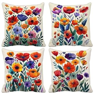 Kissenbezug Blume Outdoor Kissen 4er Set, Wasserdichter Sofakissen Rot Kissenbezüge Leinen Dekokissen mit Unsichtbarem Reißverschluss Zierkissen für Wohnzimmer Garten Dekorative 65×65 cm-lsy250436