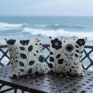 Outdoor Kissen 35×35 cm, Kissenbezug Schwarz Sitzkissen Outdoor Wetterfest Kissenbezüge Blume, Samt Sofakissen Dekokissen Kopfkissenbezug, Fall Sommer Deko für Wohnzimmer Terrasse 2er Set Q-4519