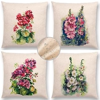 Outdoor Kissen Wasserdichter Kissenbezug 80x80cm 4er Set Dekokissen Leinen Kissenhülle Sofa Kissen Kissenbezüge Quadrat Zierkissenbezüge für Couch Garten Zuhause Dekoration, Frühlingsblumen S303