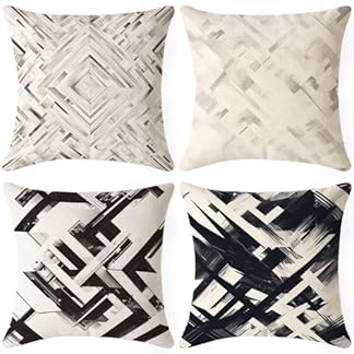 Outdoor Kissen Abstrakt Kissenbezug 80x80cm Schwarz und Weiß, 4er Set Outdoor Kissen Wetterfest mit ReißVerschluss Dekokissen Leinen Kissenhülle für Schlafzimmer Wohnzimmer Terrassen Balkon Deko 2L-H