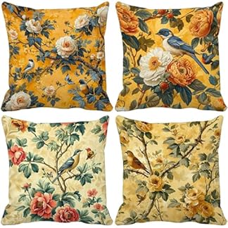 Blumen Outdoor Kissen 65 x 65 cm 4er Set Kissenbezug Gelb Dekokissen, Leinen Outdoor Kissen Wetterfest für Sofa Stuhl Schlafzimmer Wohnzimmer Garten Bauernhaus Frühling Zierkissenbezug -XZ25055E
