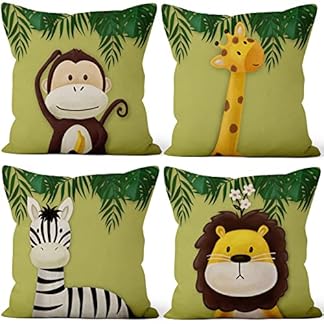 €25,99Produkt kaufenAoihrraan 51x51cm 4er Set Süß Karikatur Tier Dekorativ Kissenbezug Wald AFFE Giraffe Blumen Pflanze Quadratische Sofakissen Hellrosa Dekokissen Aus Leinen Kinder Party Sofa Baby Schlafzimmer Bett